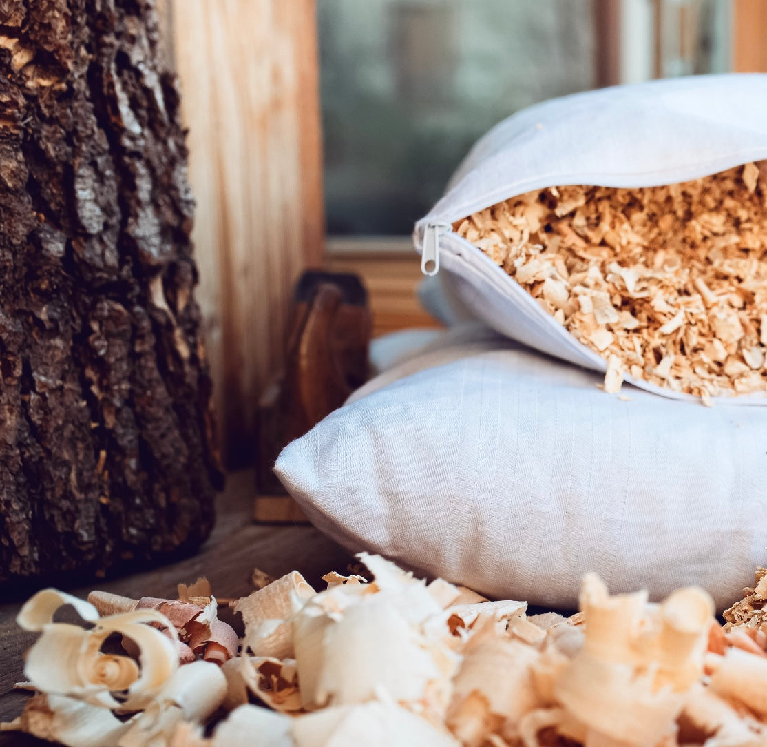 - Imbottitura in fiocchi di vero cirmolo delle Dolomiti.